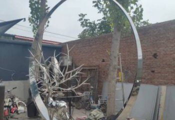 圓環雕塑相當于一個空心的圓,空心圓擁有一個小半徑,整個圓有一個大半徑,整個圓的半徑減去空心圓半徑就是環寬。生活中的例子有空心鋼管,甜甜圈,指環,游泳圈等,截取圓環雕塑一部分的叫扇環。圍繞一個點并以一定長度為距離旋轉一周形成的封閉曲線叫做圓。